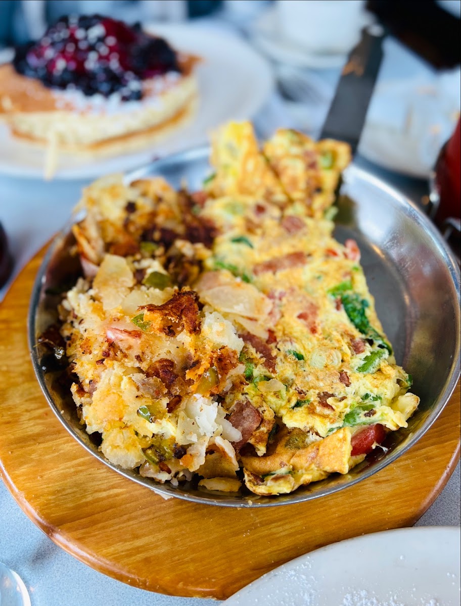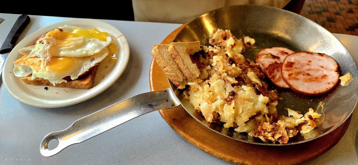 Thomas's Ham & Eggery Diner is renowned for its diverse menu that features a range of specialty salads, Belgian waffles, and delectable French toast options. Start your day with their Grilled Chicken Salad, a fresh ensemble of chargrilled chicken breast over a tossed salad, drizzled with honey mustard dressing— a delightful combination of flavors for just $7.75. Or indulge your sweet tooth with their famous Chocolate Almond Chip Waffles, a heavenly mix of crispy waffle generously studded with chocolate chips and toasted almonds, all crowned with fresh whipped cream for only $6.50.